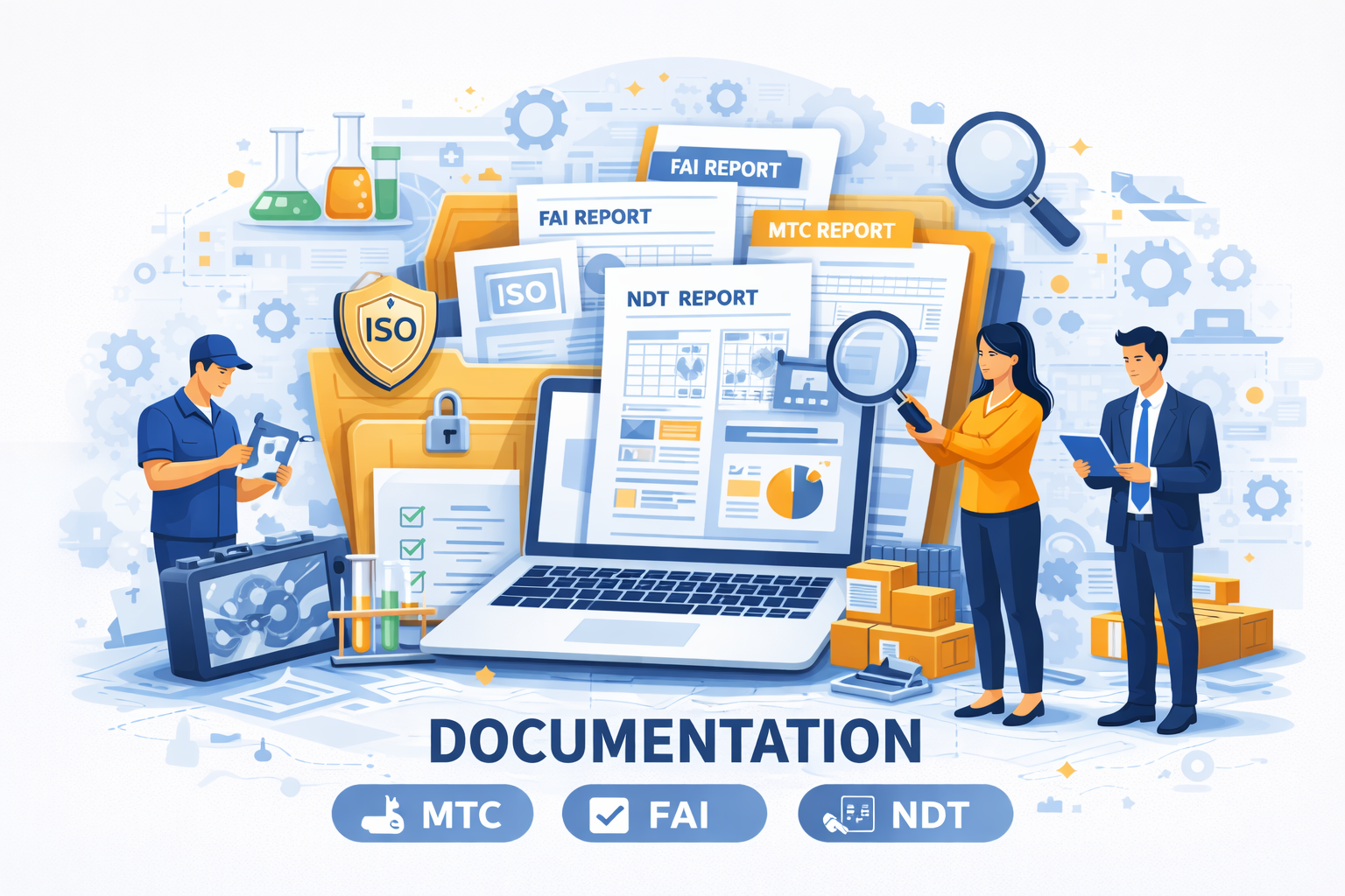 Each order includes MTC, FAI, NDT reports, and quality photos.